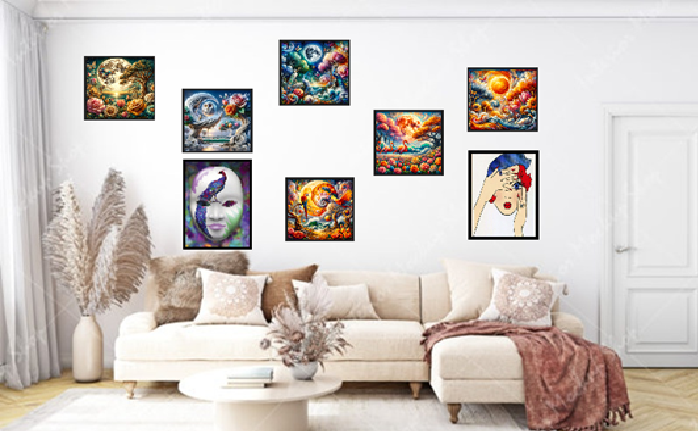 Versatility and Theme: Consider art that ties into the room’s purpose or theme, such as calming nature scenes for a bedroom or vibrant abstracts for a living room. Cohesive themes can unify your home’s aesthetic.